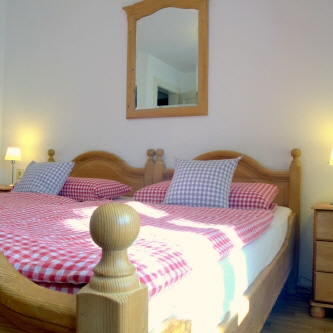 Unsere Ferienwohnung im Erdgeschoss ist ideal für zwei Personen; sie kann aber auch mit bis zu drei Personen belegt werden. In diesem Fall wird aus dem Wohnzimmer ein weiteres Schlafzimmer. So können wir auch kleine Familien unterbringen.