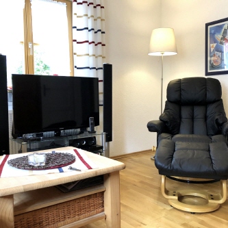 Wir möchten, dass sich unsere Gäste wie zu Hause fühlen können und nichts vermissen. Wir legen daher auf eine hochwertige und reichhaltige Ausstattung unserer Ferienwohnung im Erdgeschoss großen Wert. Dies betrifft insbesondere auch moderne Multimedia-Technik. Mehrere Fernseher, hochwertige Hifi-Anlagen mit iPhone-Deckingstation sind selbstverständlich.