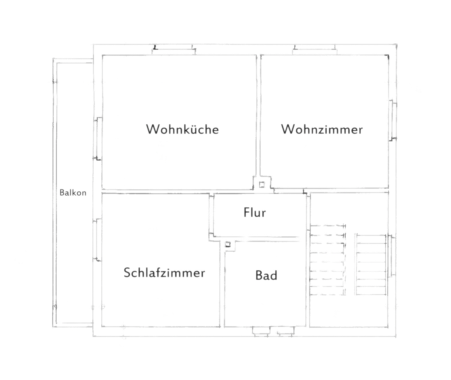 Unsere Ferienwohnung im 1. Obergeschoss ist ca. 66 qm groß und mit folgendem ausgestattet: