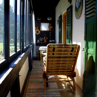 Wählen Sie unsere Ferienwohnung im Obergeschoss, wenn Sie auf einen großen, verglasten Balkon nach Osten mit Wintergartenfeeling wert legen! Genießen Sie die Wärme bereits am frühen Vormittag. Erholen Sie sich auf dem Schaukelstuhl oder einer Hängematte (für zwei Personen geeignet).