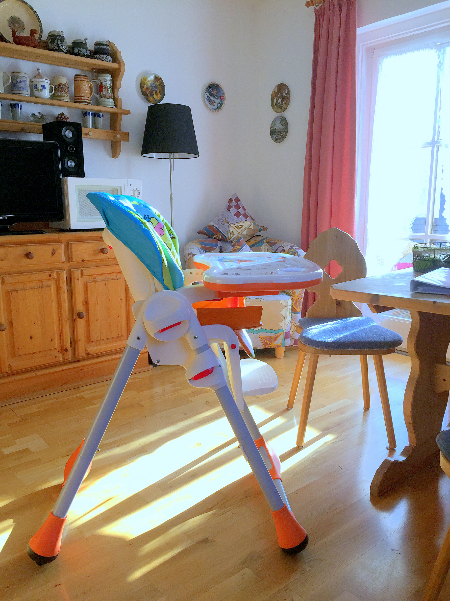Wir haben die meisten Gegenstände unserer Baby- und Kleinkindausstattung mehrfach, so dass wir Ihnen die Gegenstände auch zur Verfügung stellen können, wenn beide Wohnung mit kleinen Kindern belegt sind. Soweit wir die Gegenstände nicht mehrfach haben und beide Wohnungen mit Familien mit Kindern belegt sind, gilt: wer zuerst bucht, malt zuerst.